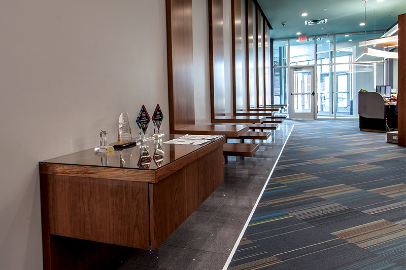 Leepfrog Technologies, a Coralville, IA software company specializing in educational systems, contracted with Corridor Construction Services to perform custom carpentry work in their new corporate headquarters.